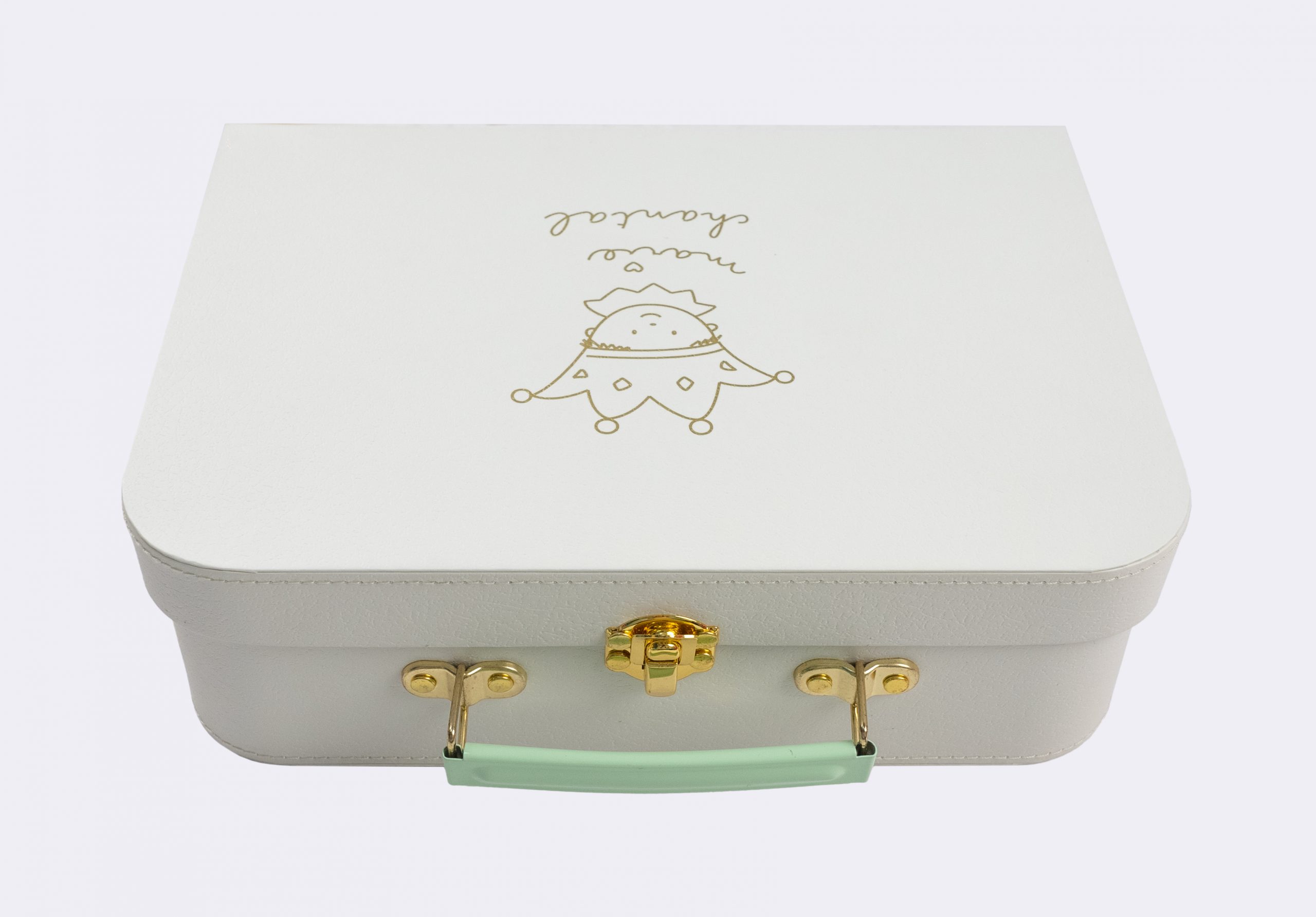 This delicate, pale green gift box adorned with the iconic imagery of “The Little Prince.” Its pastel hue captures the whimsy and wonder of the beloved tale, while the finely detailed illustration of the Little Prince himself lends a touch of timeless charm. Crafted with meticulous attention to detail, the box radiates a sense of nostalgia and magic. The gentle green shade, paired with the enchanting design, makes it an ideal keepsake for fans of the classic story or those seeking a special touch for their gift presentation. Beyond mere functionality, this box stands as a tribute to enduring tales and the beauty of childhood memories.